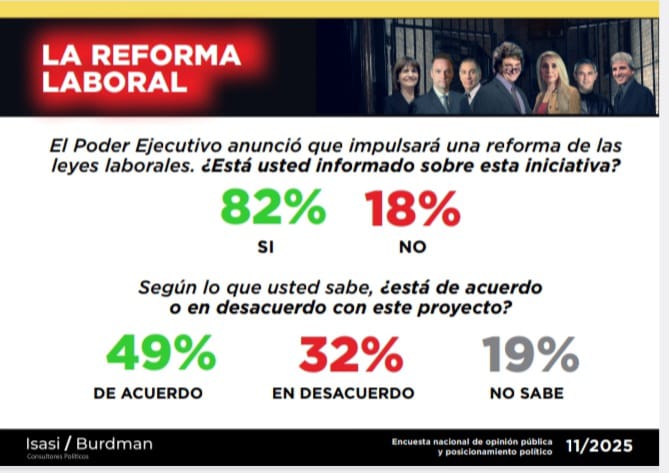 Un estudio de Isasi / Burdman Consultores Políticos realizado en el mes de diciembre de 2025, al que 40porciento tuvo acceso en forma exclusiva, muestra que existe un apoyo social a la reforma laboral que impulsa el oficialismo.